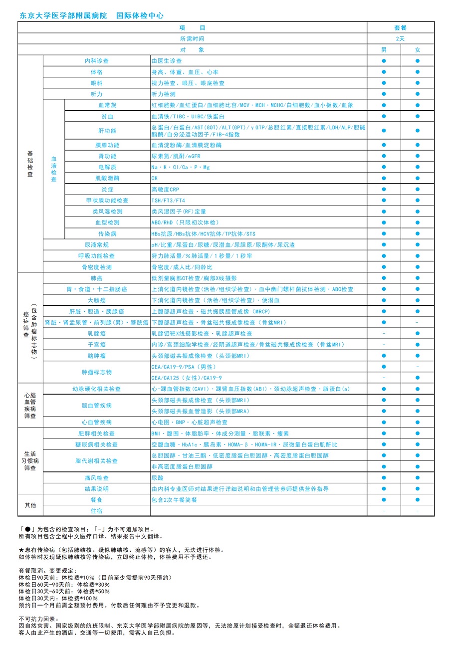 ●为检查项目。下方「单选项目」为可追加项目,费用不含在套餐里。-为不可选项目。