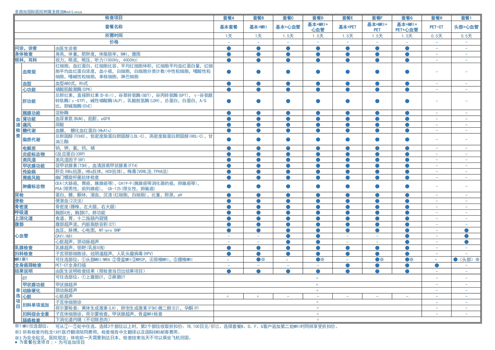 所有项目包含全程中文医疗翻译,结果报告中文翻译。